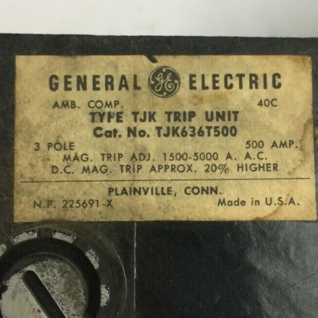 GE TJK636T500 TRIP UNIT 500AMP 3POLE MAG TRIP ADJ 1500-5000A